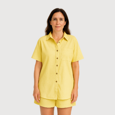 Le décolleté en V avec détails ajourés et les manches courtes vous accompagnent tout au long de la journée. Même sous la chaleur, on reste dans la détente, le style et l'élégance avec Lison.